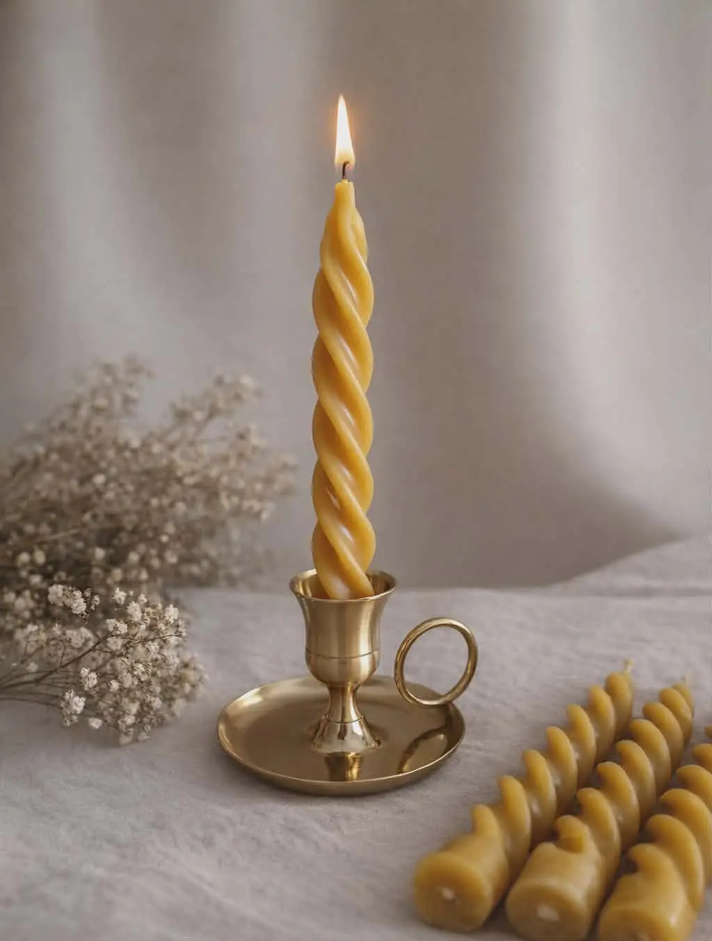 Świece nie są magią ani obietnicą efektów — są cichym wsparciem Twojej uważności i obecności. Mogą różnić się nieco grubością i długością, co podkreśla ich naturalny, wyjątkowy charakter. W zestawie znajduje się również świecznik, który pozwala korzystać ze świec w prosty i bezpieczny sposób.