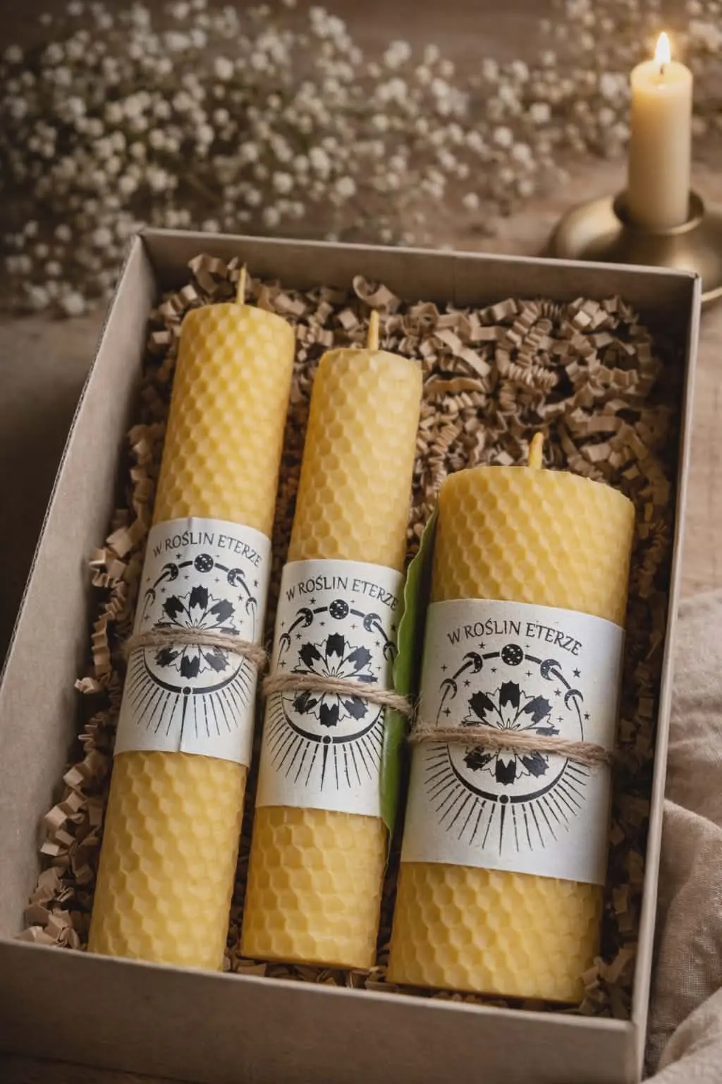 | Wymiary pojedynczej świeczki | 12 cm x 4 cm, 18 cm x 3 cm, 12 cm x 5 cm |